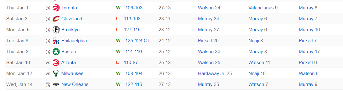 约基奇缺席的八场比赛掘金取得了5胜3负的战绩,很多人都觉得缺少了约基奇后这支球队的战绩会一落千丈,尤其是穆雷也有伤缺席了3场比赛,结果沃特森成为掘金新的领袖。