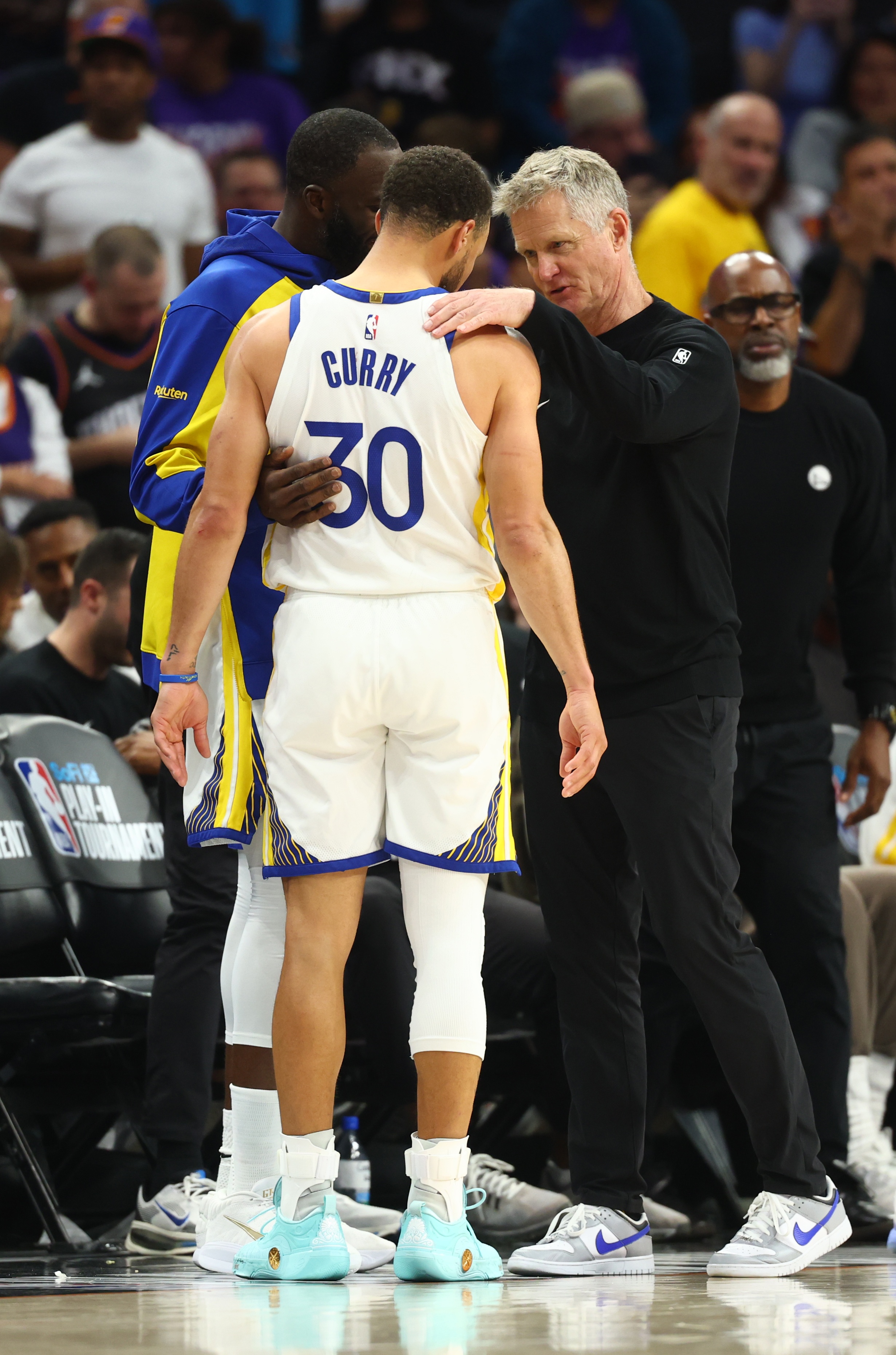 没有人比他们三人更清楚时代变迁和物是人非的速度。这在他们本赛季的经历中展现得淋漓尽致。在败局已定的情况下,这三位金州勇士的中流砥柱,也是那支改变篮球运动的王朝球队仅存的三人组,聚在一起共度了这一刻。毫无疑问,他们非常清楚这可能是最后一次了。